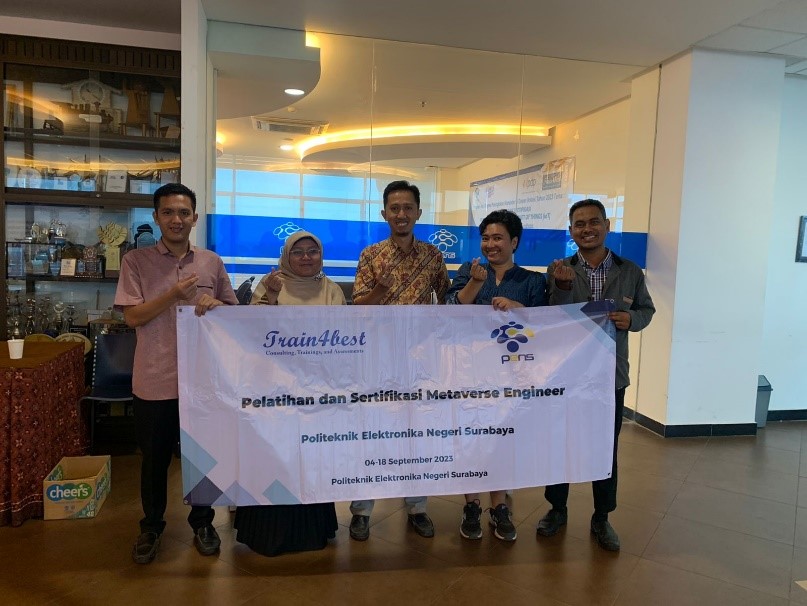 Pada hari Senin - Jumat tanggal 4 - 15 Bulan September, Tahun 2023, bertempat di Politeknik Elektronika Negeri Surabaya Institut Teknologi Sepuluh Nopember, Kampus Jl. Raya ITS, Keputih, Kec. Sukolilo, Surabaya, Jawa Timur 60111 telah dilakukan Pelatihan dan Sertifikasi Metaverse Engineer. Hasil Pelatihan ini menyiapkan para peserta agar mampu meningkatkan pengetahuan mengenai Metaverse dan mengaplikasikannya.
