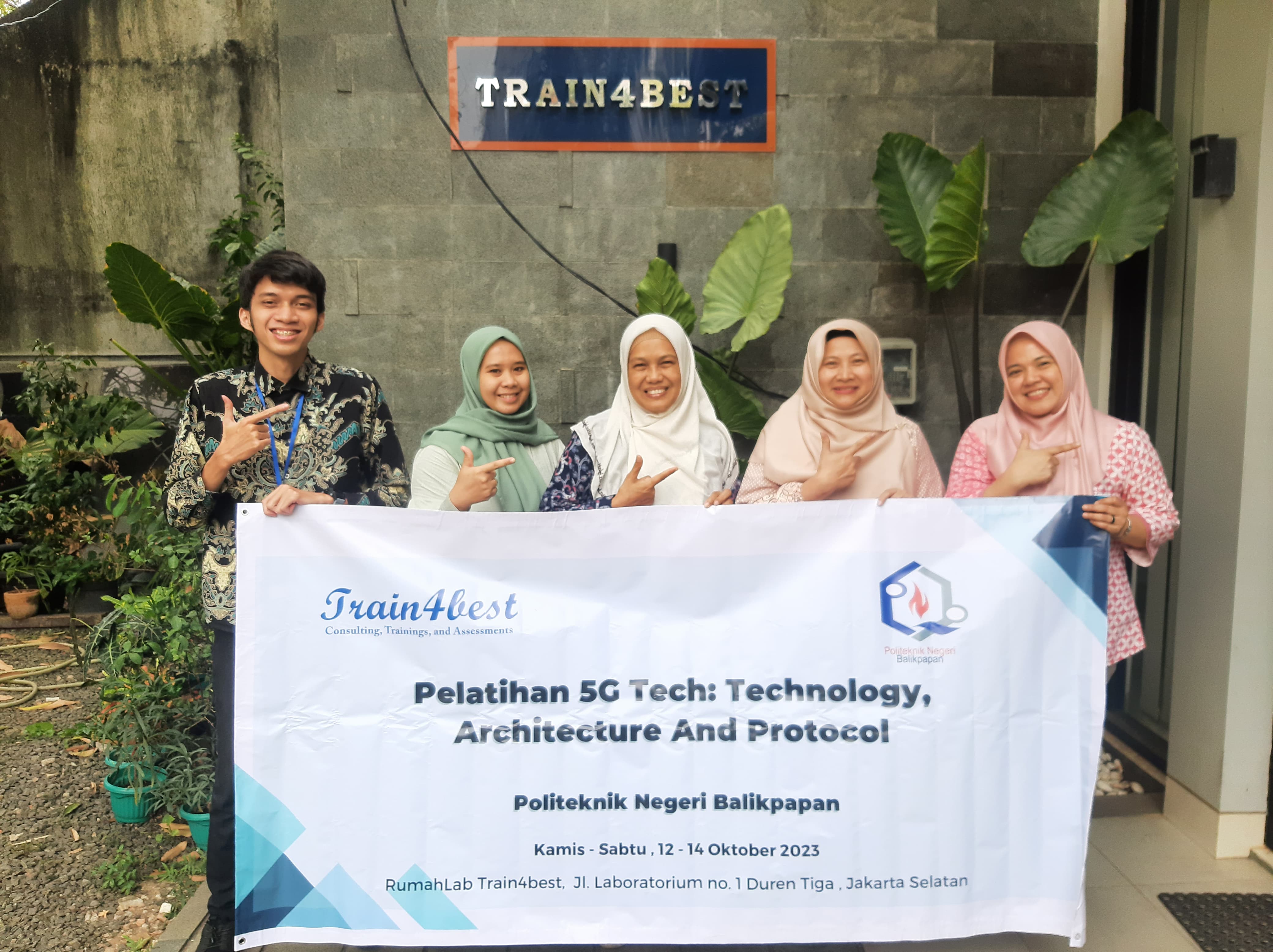 Pada hari Kamis, Jumat, dan Sabtu tanggal 12, 13, dan 14 Bulan Oktober Tahun 2023, bertempat di RumahLab Train4best Jl. Labortorium no. 1, Duren tiga, Jakarta Selatan telah dilakukan Pelatihan 5G Tech: Technology, Architecture and Protocol. Hasil Pelatihan adalah para peserta dapat memiliki pengetahuan, keterampilan, dan kompetensi dalam 5G Technology, Architecture and Protocols.