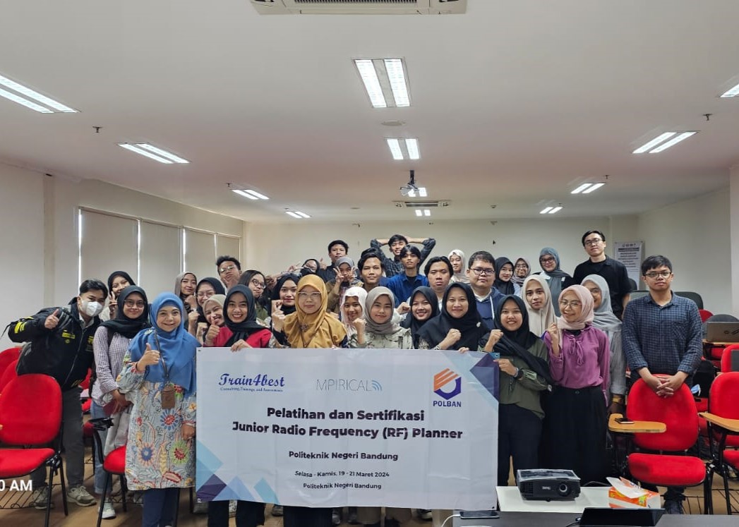 Pada hari Selasa tanggal 19 Maret 2024 bertempat di Politeknik Negeri Bandung Ruang Conference Lantai 3 Gedung H dan hari Rabu sampai dengan Kamis tanggal 20 sampai dengan 21 Maret 2024 via Zoom Meeting telah dilakukan Pelatihan dan Sertifikasi Junior Radio Frequency (RF) Planner yang diikuti oleh 61 orang peserta dari Politeknik Negeri Bandung. Hasil Pelatihan ini peserta dapat memiliki keterampilan mengenai dasar perencanaan radio untuk Jaringan 5G, belajar mengenai perangkat lunak perencanaan radio yang digunakan dalam mengoptimalkan cangkupan, kapasitas, dan kinerja Jaringan 5G. Peserta juga mendapatkan keterampilan dalam perencenaan Jaringan 5G seperti pemilihan lokasi site, penempatan antena, mengelola serta memelihara Jaringan 5G.