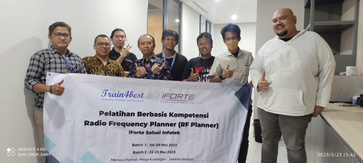 Pelatihan Radio Frequency Planner (RF Planner) Batch 2 yang diikuti oleh 7 peserta dari PT. iForte Solusi Infotek pada 22-23 Mei 2023 di Menara Pertiwi-Kawasan Mega Kuningan, Jl. Mega Kuningan Barat III, No.4 RW.5, Kuningan, Jakarta Selatan berfokus pada Desain Link Budget di Jaringan Akses, Perencanaan Coverage di Jaringan Akses, Perencanaan Radio Frekuensi di Jaringan Akses, serta praktik Radio Frekuensi. Pelatihan dibawakan oleh instruktur pelatihan yang expert di bidangnya. Hasil pelatihan peserta dapat mengetahui konsep dari Radio Frekuensi serta dapat praktik langsung mengenai Perencnaan Radio Frekuensi.